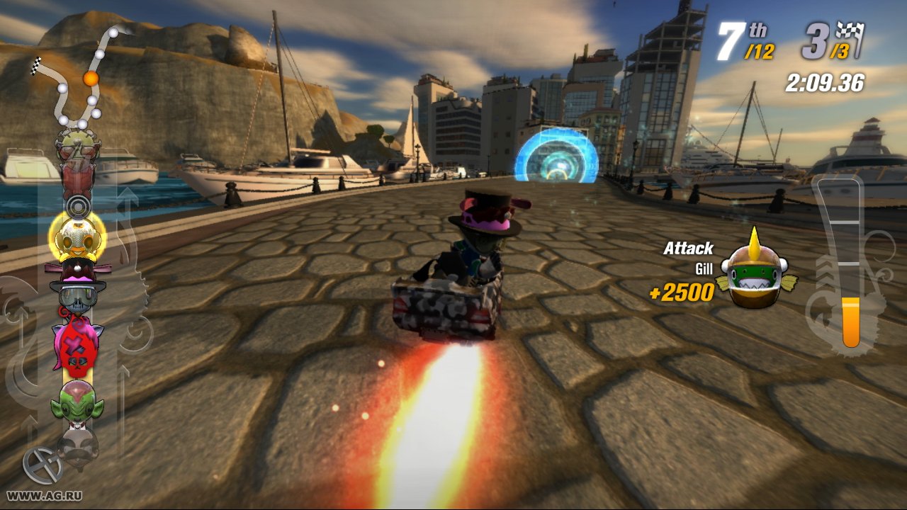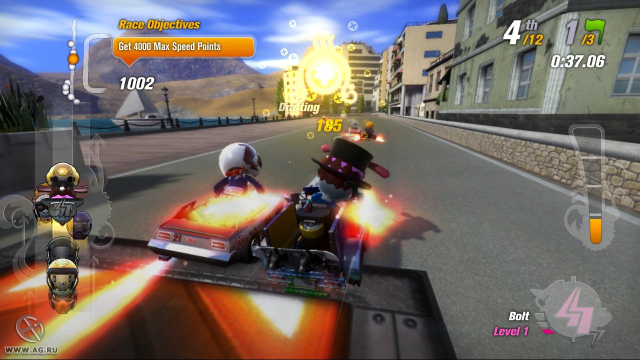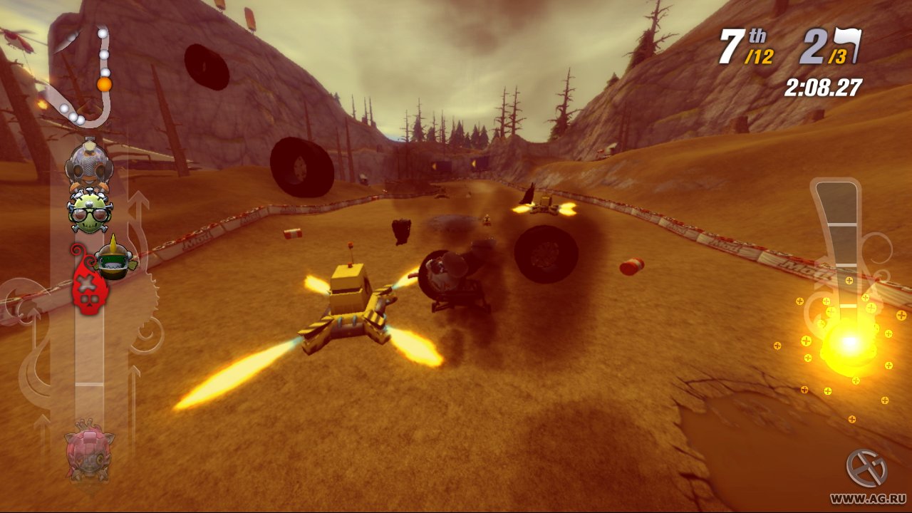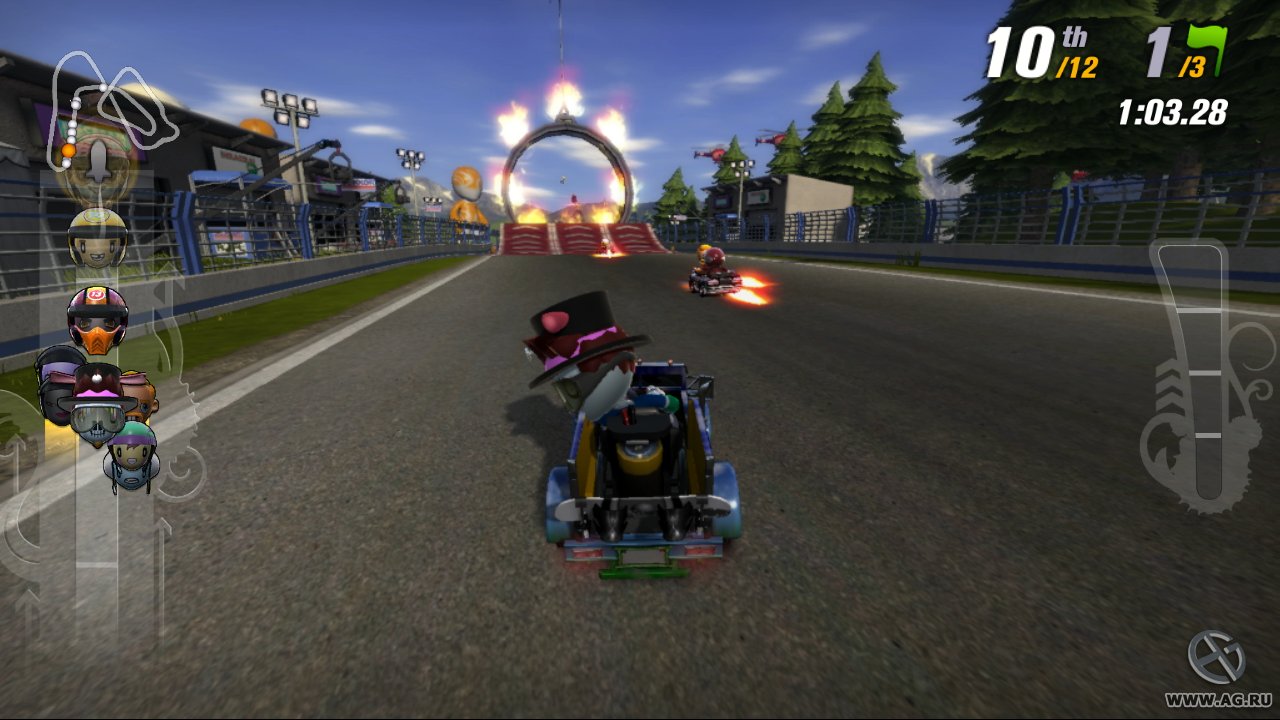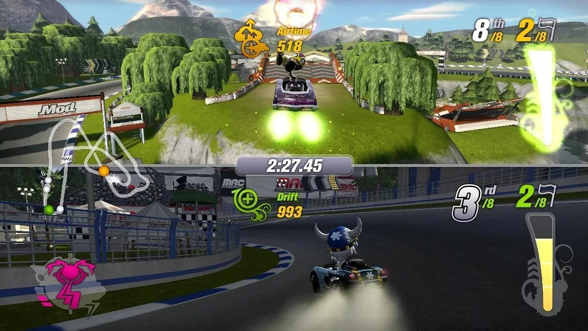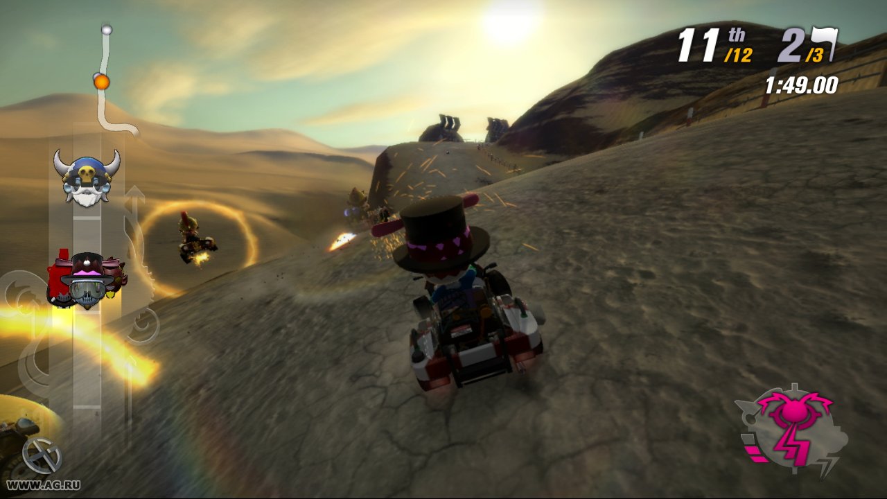 Забудьте про скучные гонки с идеальными машинами и асфальтом, который вылизан до блеска! Встречайте ModNation Racers — это не просто картинг-гонки, это настоящий цирк скорости, где ваша фантазия — главный режиссер, а законы физики — всего лишь рекомендации. Представьте себе любовное дитя Mario Kart и LittleBigPlanet: здесь вы не только мчитесь по трассе, оставляя за спиной клубы дыма и вражеские болиды, но и сами лепите из этого безумия всё, что душе угодно. Это игра-конструктор для тех, кто всегда мечтал поставить на колёса своего любимого персонажа или создать трассу, которая напоминает квест из "Форт Боярд". Жанр? Назовём его "аркадные гонки с элементами творчества и здоровенной долей хаоса".