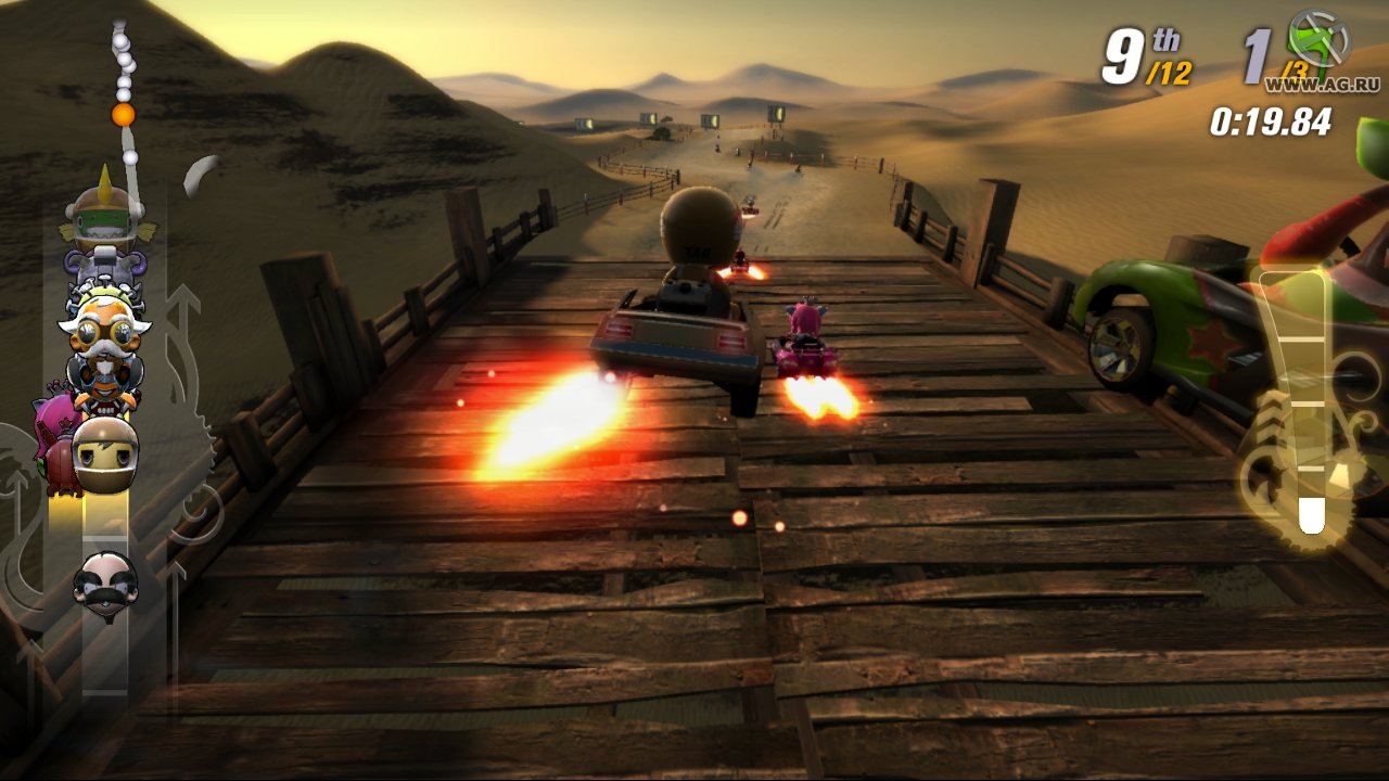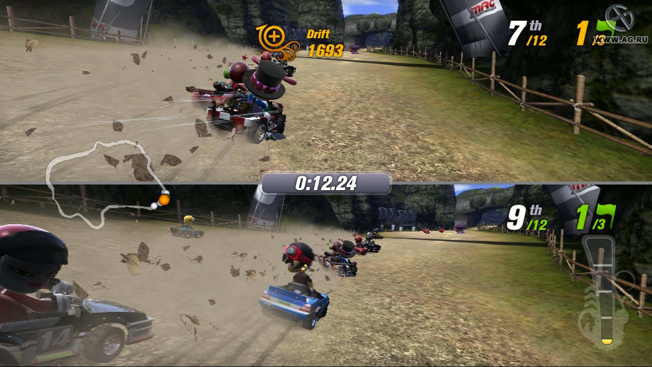В общем, ModNation Racers — это must-play для всех ценителей аркадных гонок, любителей кастомизации и просто тех, кто хочет хорошо посмеяться над своими (и чужими) неудачами на трассе. Это не просто игра, это платформа для вашего креатива, упакованная в безумные, динамичные и очень забавные гонки. Так что запускайте редактор, соберите свой уникальный болид и отправляйтесь покорять трассы, созданные самой безграничной фантазией — вашей и миллионов других игроков!