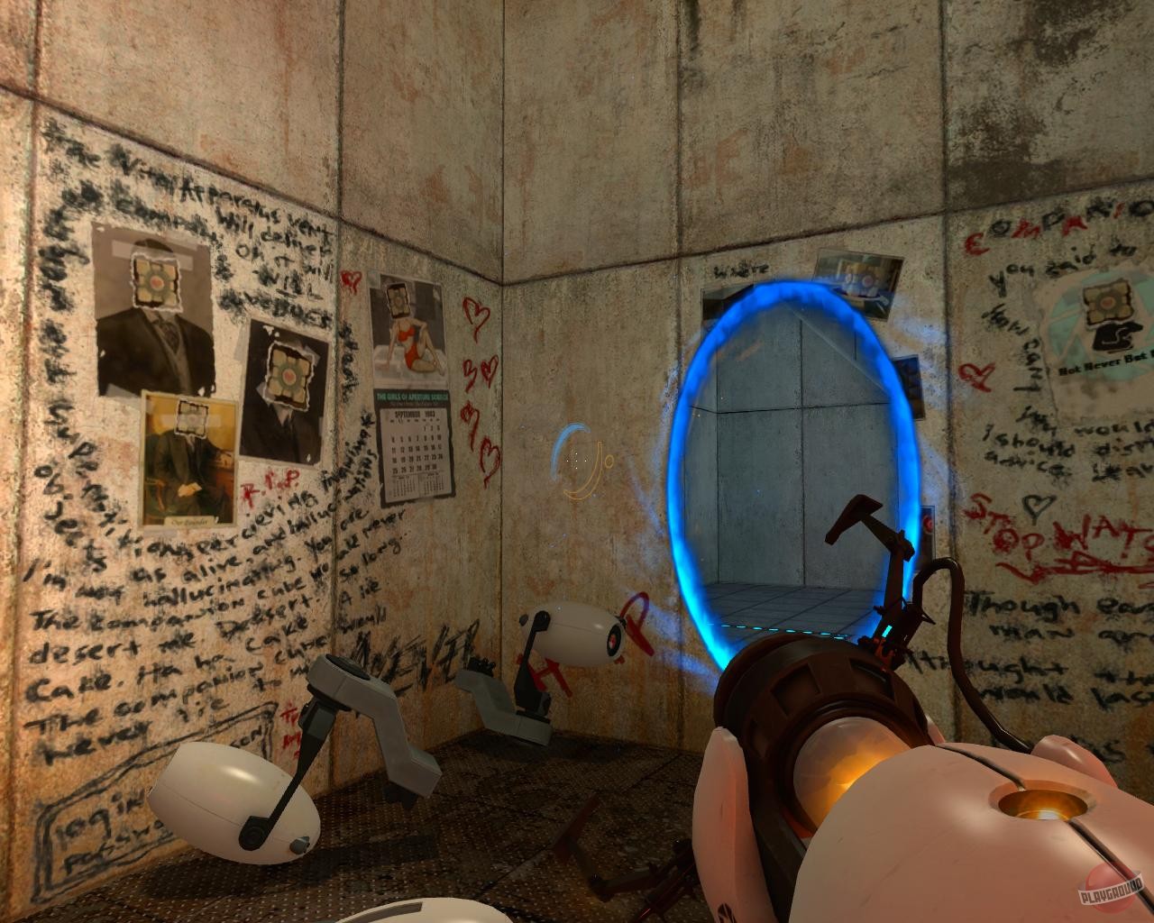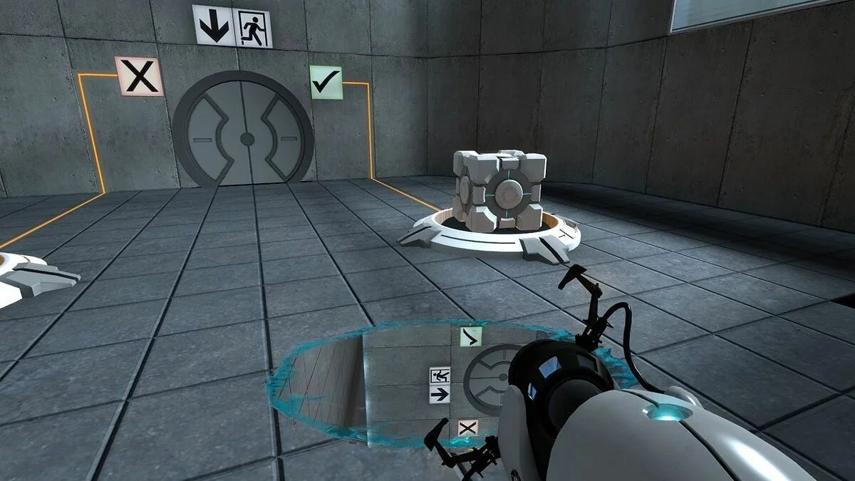 Portal - игра в жанре First Person Puzzle, вышедшая в составе сборника The Orange Box. События игры разворачиваются во вселенной Half-Life, в Лаборатории исследования природы порталов, однако к сюжету самого Half-Life Portal не имеет никакого отношения. Главную героиню произведения зовут Челл, которая при помощи ручного портального устройства может создавать порталы, сквозь которые она способна передвигаться или перемещать предметы. Вся игра состоит из 19 тестовых комнат, переходы между которыми осуществляются с помощью лифта, а также ряда подсобных помещений. По мере прохождения для решения все усложняющихся головоломок игроку предстоит комбинировать различные приемы. Большую часть игры Челл путешествует под надзором суперкомпьютера GLaDOS, однако под конец игры Челл выходит из под контроля компьютера и пытается сбежать из Лаборатории.
