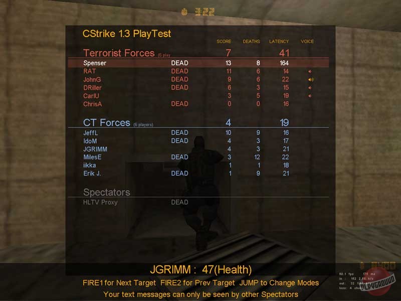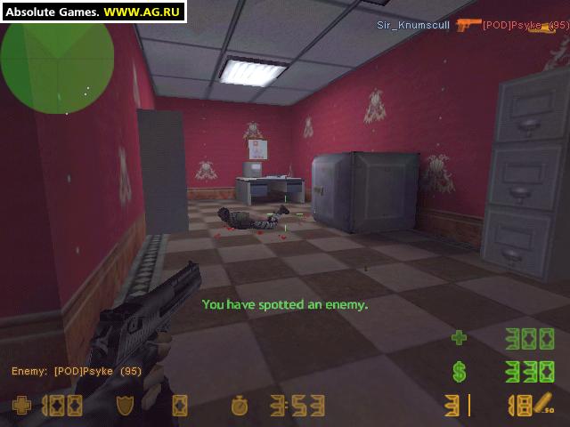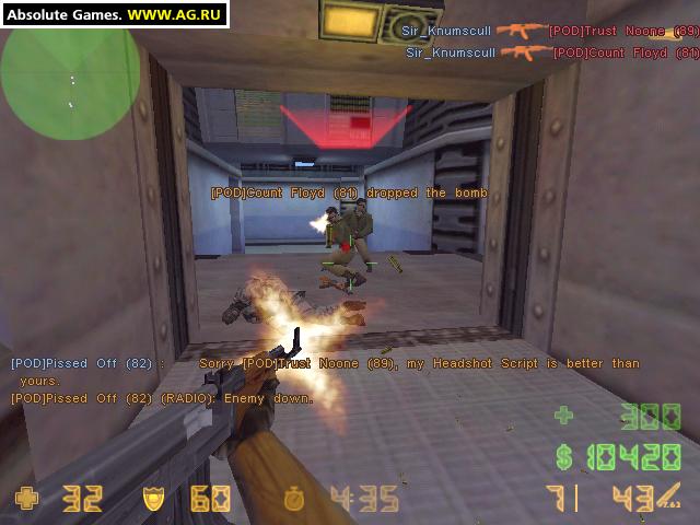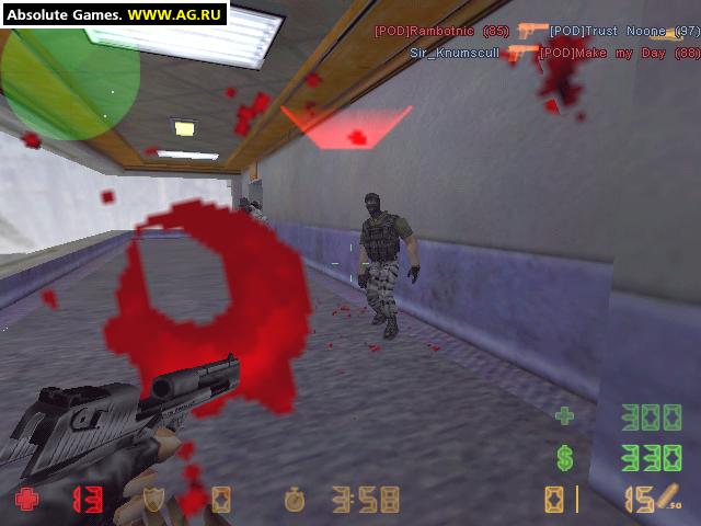 Counter-Strike - изначально фанатская модификация для Half-Life про противостояние террористов и спецназовцев, созданная специально для многопользовательского режима. Модификация обрела огромную популярность и разрослась в целую серию игр (CS: Source и CS: Global Offensive). Игрокам в роли членов двух команд предстоит сражаться друг с другом на разнообразных картах в нескольких разных режимах (разминирование, спасение заложников и другие). Цель каждой команды - или выполнить определенное условие режима, или же уничтожить всю вражескую команду. Каждый игрок обладает одной "жизнью" на раунд, и в случае смерти никак не может влиять на поле боя.