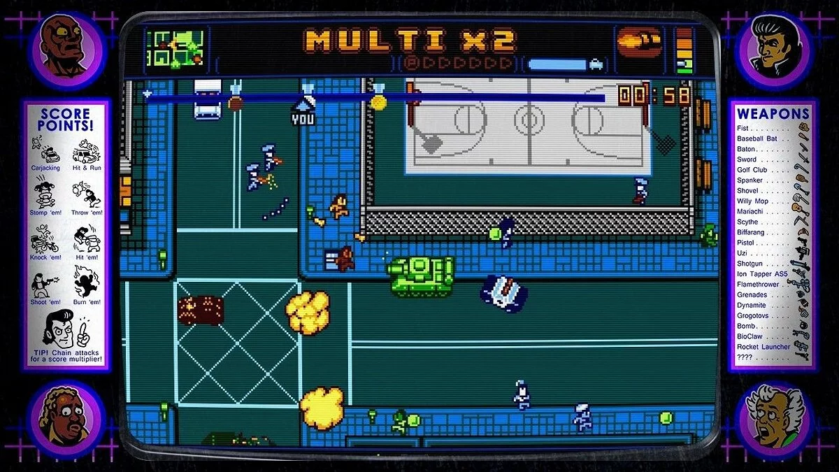 Вас ждет открытый мир, набитый до отказа отсылками на классику видеоигр и поп-культуры. Готовы ли вы угнать пиксельный автомобиль и устроить погоню, достойную «Безумного Макса»? А может, вы предпочтете пройти одну из более чем 60 сюжетных миссий, где вам придется и кражи совершать, и злодеев ловить, и даже в мини-играх, стилизованных под такие хиты, как Super Meat Boy или BIT.TRIP RUNNER, побегать? В Retro City Rampage DX каждый уголок карты — это новая возможность для безумия. Вы можете просто бродить по улицам, размахивая бейсбольной битой, или устроить настоящую войну с полицией, вооружившись всем, что найдете — от водяных пистолетов до ракетниц. Геймплей здесь максимально динамичный, а юмор — черный, как кофе у программиста после дедлайна.
