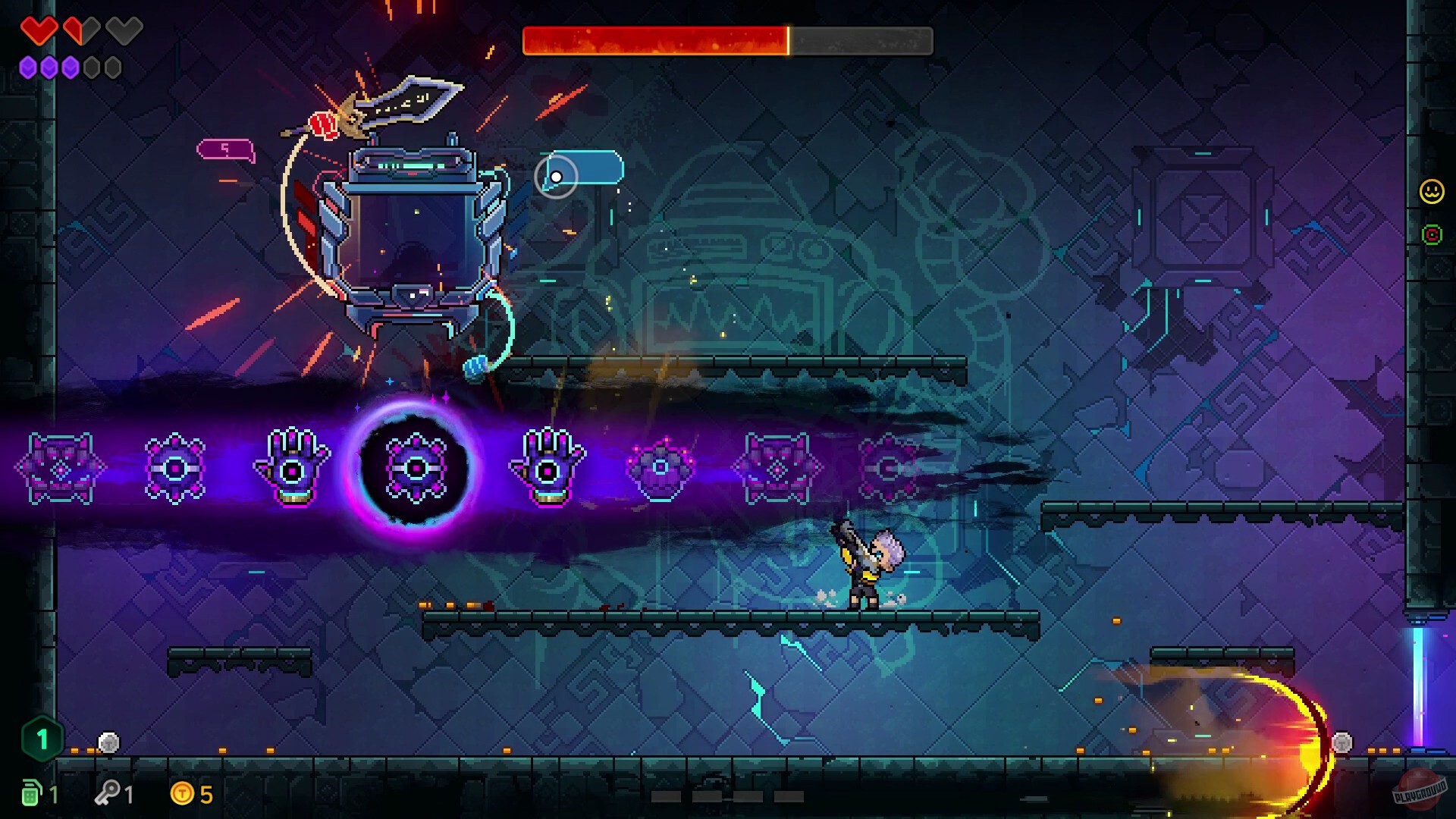 Кооперативный режим на четырёх игроков только усиливает хаос: совместные комбо, сумасшедшие сборки и неумолимая динамика заставляют адаптироваться на лету. Бездна меняется, подбрасывая всё новые вызовы, а каждая партия — как новое музыкальное соло в стиле неонового безумия.
