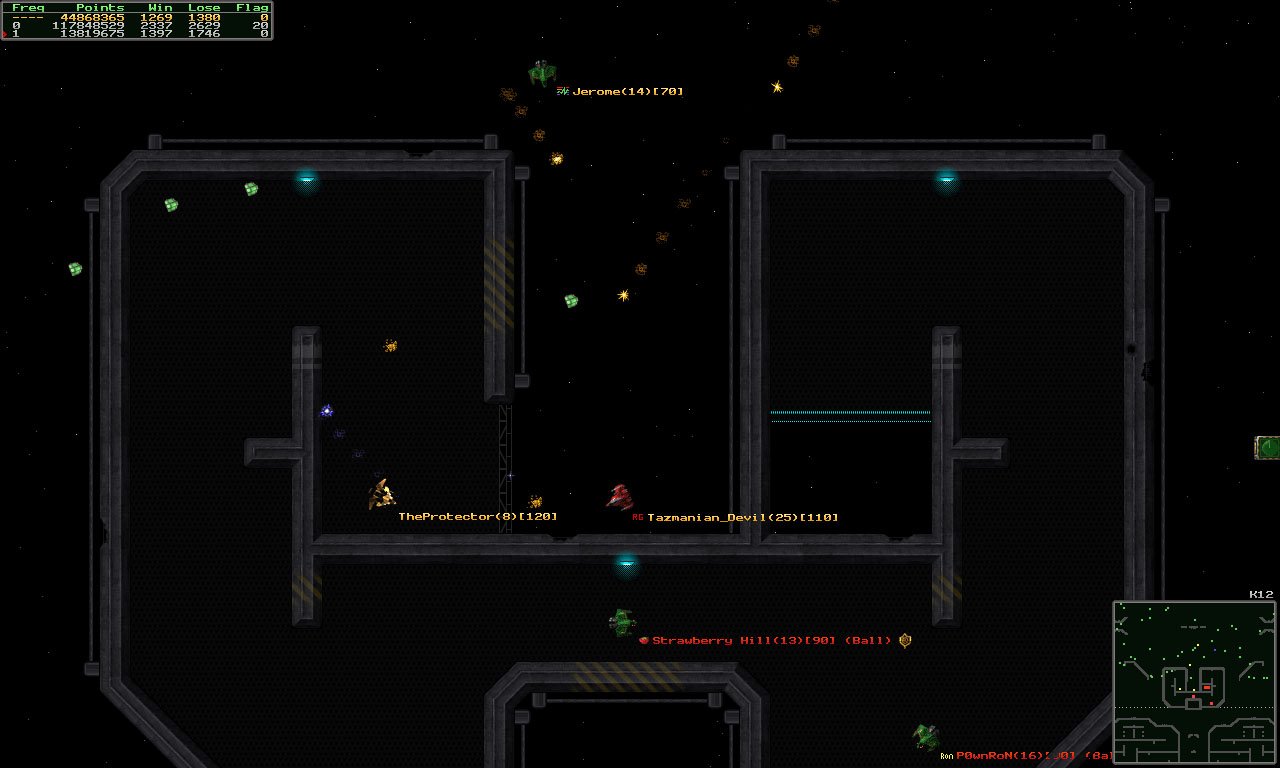 Что делает Subspace Continuum настоящим раем для любителей динамичного PvP? Всё дело в разнообразии! Вы можете выбрать свой стиль игры, подобрав один из восьми кораблей-режимов, каждый из которых обладает собственным набором вооружения, скорости и манёвренности. Хотите быть танком, который медленно, но верно давит врагов? Пожалуйста! Мечтаете о роли хитрого снайпера, уничтожающего противников с дальней дистанции? Легко! А может, вы мастер ближнего боя и любите устраивать хаос в гуще сражения? Тогда вам точно сюда! Игра предлагает множество игровых зон с разными правилами и целями: от классических «войн в окопах» (Trench Wars), где нужно захватывать базы, до свободных для всех режимов «каждый сам за себя». Это идеальный пример того, как простая концепция, вдохновлённая таким аркадным хитом, как Asteroids, превращается в сложную и увлекательную многопользовательскую экосистему.