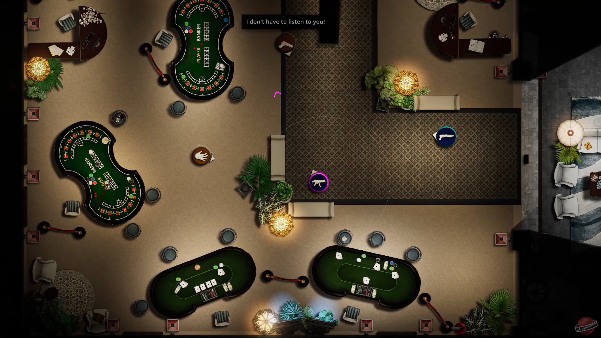 Геймплей Hot Brass строится на двух ключевых фазах: подготовке и действии. На этапе планирования вы изучаете карту, расставляете своих бойцов, выбираете точки входа и продумываете каждое движение, как гроссмейстер перед решающим ходом. А затем — бац! — начинается фаза выполнения, и ваши приказы оживают (или, что более вероятно, ваши бойцы погибают при первом же неудачном повороте). Игра щедро одаривает вас инструментами для креатива: от дымовых гранат и взрывчатки до способности перепрыгивать через любые препятствия и скользить под столами, будто вы Джейсон Борн в миниатюре. Каждый уровень — это головоломка, решаемая методом проб, ошибок и частого нажатия клавиши перезапуска.