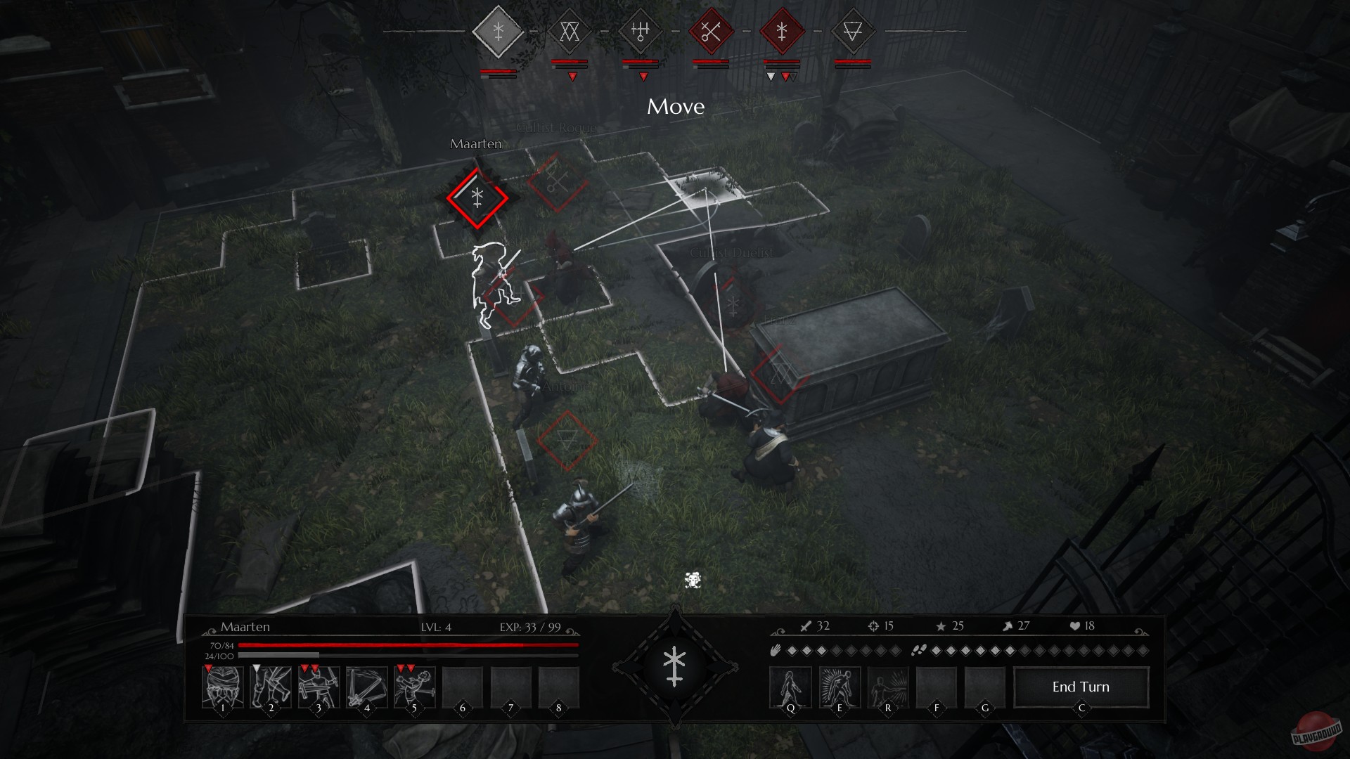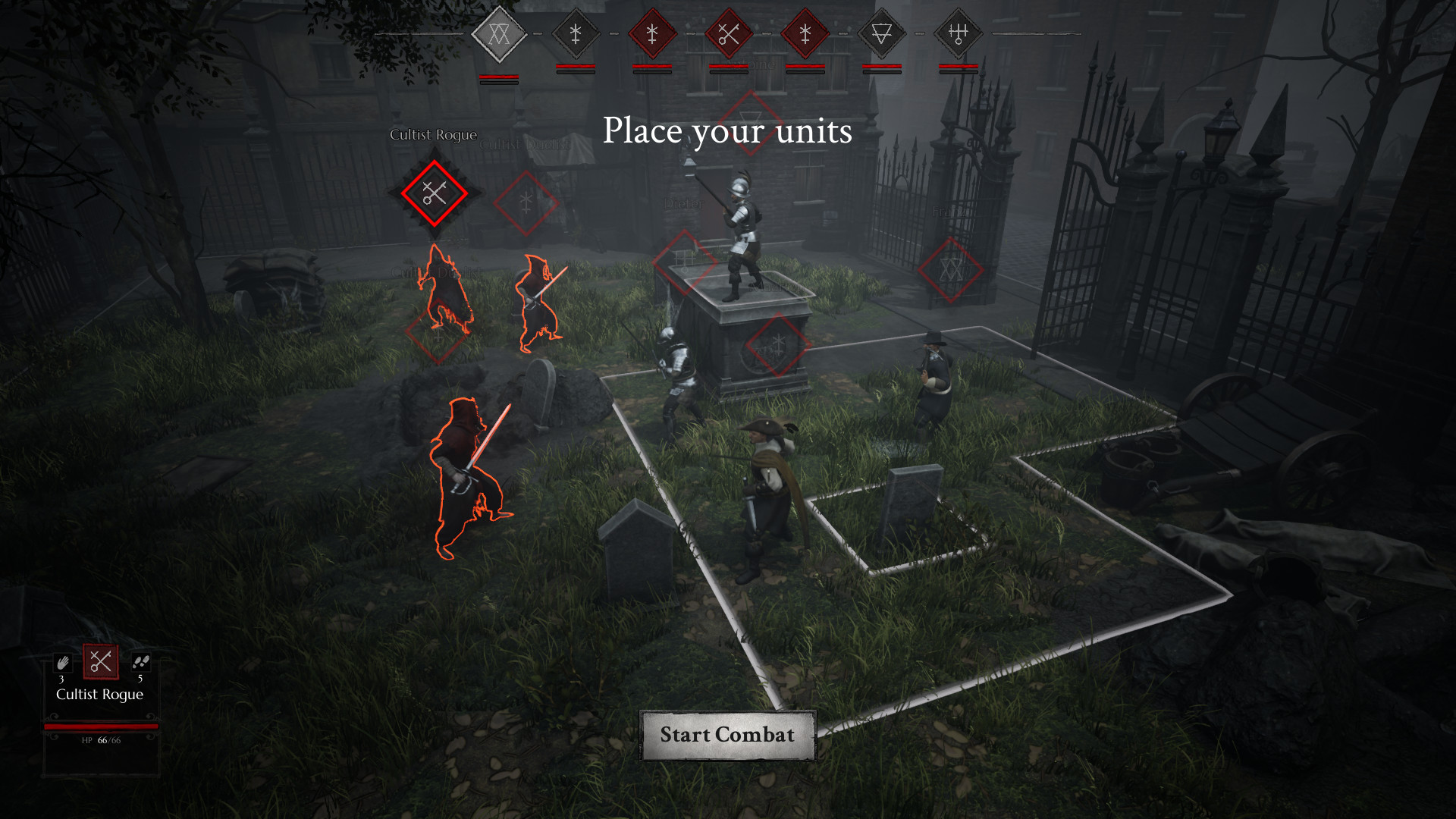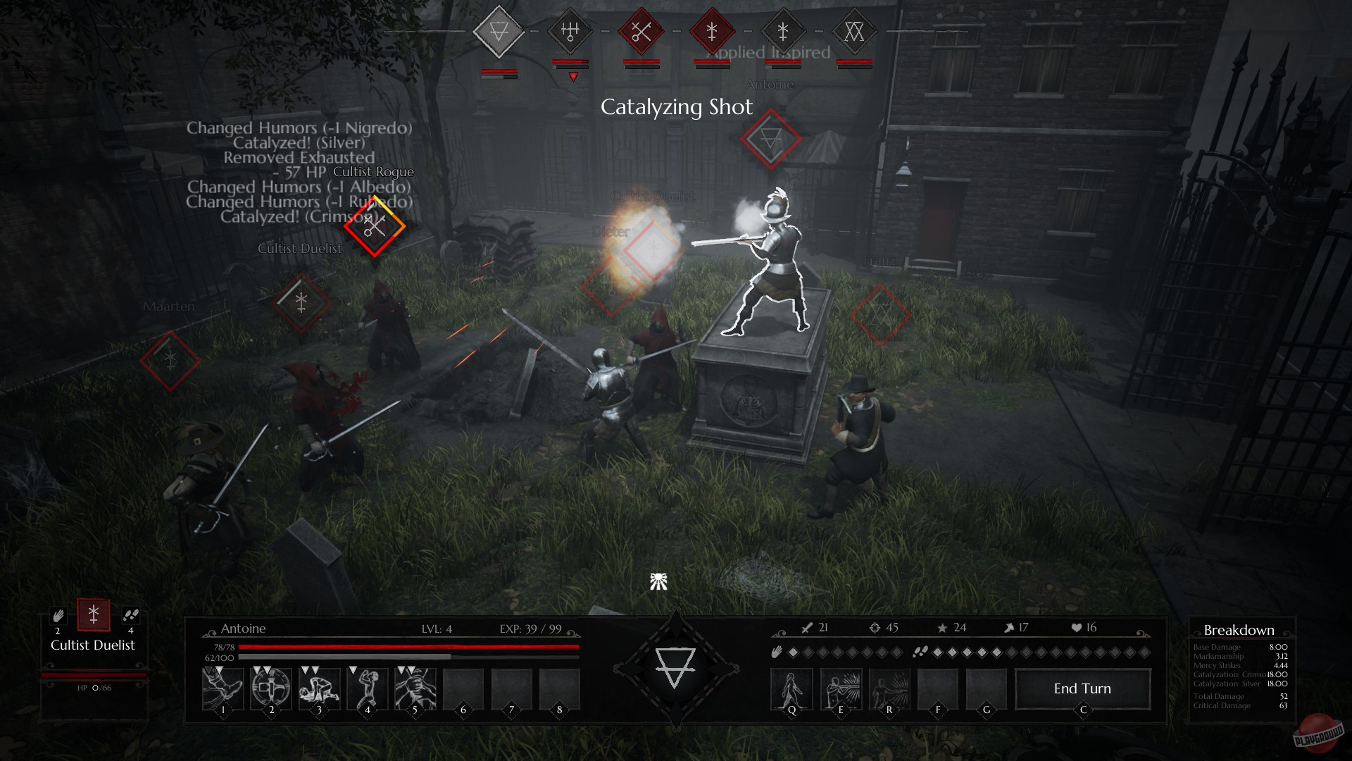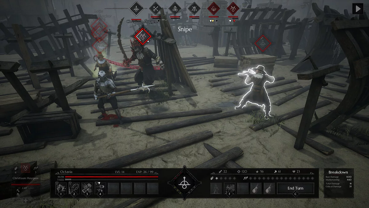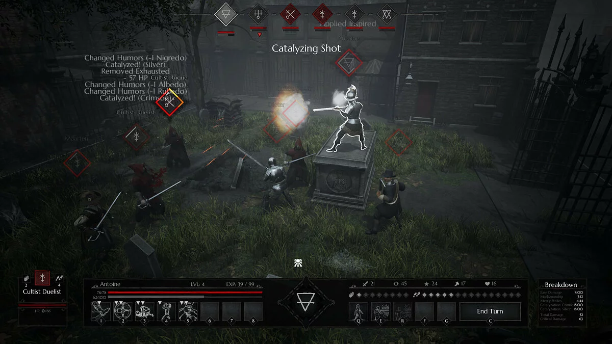Геймплей Black Legend строится вокруг уникальной и очень вкусной механики — алхимических гранат. Забудьте про банальные огненные шары! Здесь вы будете кидаться бутылочками с ядовитым туманом, взрывать врагов кислотой и создавать защитные барьеры из дыма. Каждая стычка превращается в головоломку, где важно не только, кого атаковать, но и как именно это сделать: правильное позиционирование на сетке даёт бонусы, а комбинации различных алхимических эффектов могут обратить ход боя в вашу пользу. В игре представлено целых пятнадцать классов персонажей — от классических мушкетёров и алхимиков до более экзотических вариантов вроде медика-барбера или шпиона. Это даёт огромный простор для экспериментов с билдами и тактиками, чтобы найти свой собственный путь к спасению (или полному разгрому) Гранта.