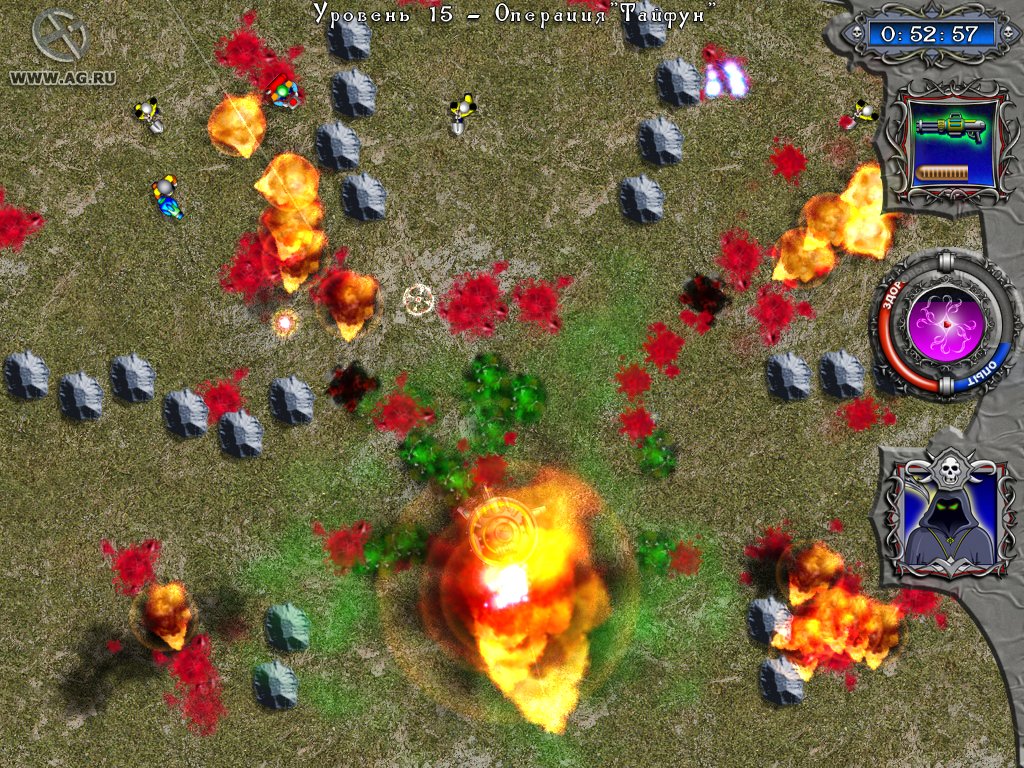 Готовы ли вы отправиться в адский отпуск, где вместо шезлонгов — груды трупов, а вместо коктейлей с зонтиком — реки лавы и свинцовые дожди из пуль? Тогда встречайте R.I.P. — безумный аркадный top-down шутер, который заставит вас смеяться до упаду, пока вы не упадёте под натиском очередной орды демонических оккупантов! Эта игра — настоящий гимн хаосу, юмору и кровавому веселью в духе культового Crimsonland, но с собственным уникальным колоритом, пропитанным чёрным юмором и рок-н-ролльным настроением. Забудьте про скучные офисы и серые будни: здесь вам предстоит примерить роль одного из трёх самых харизматичных обитателей загробного мира и устроить генералу Хрякову такой приём, что даже сам Сатана поаплодирует стоя!