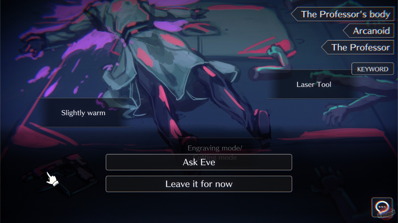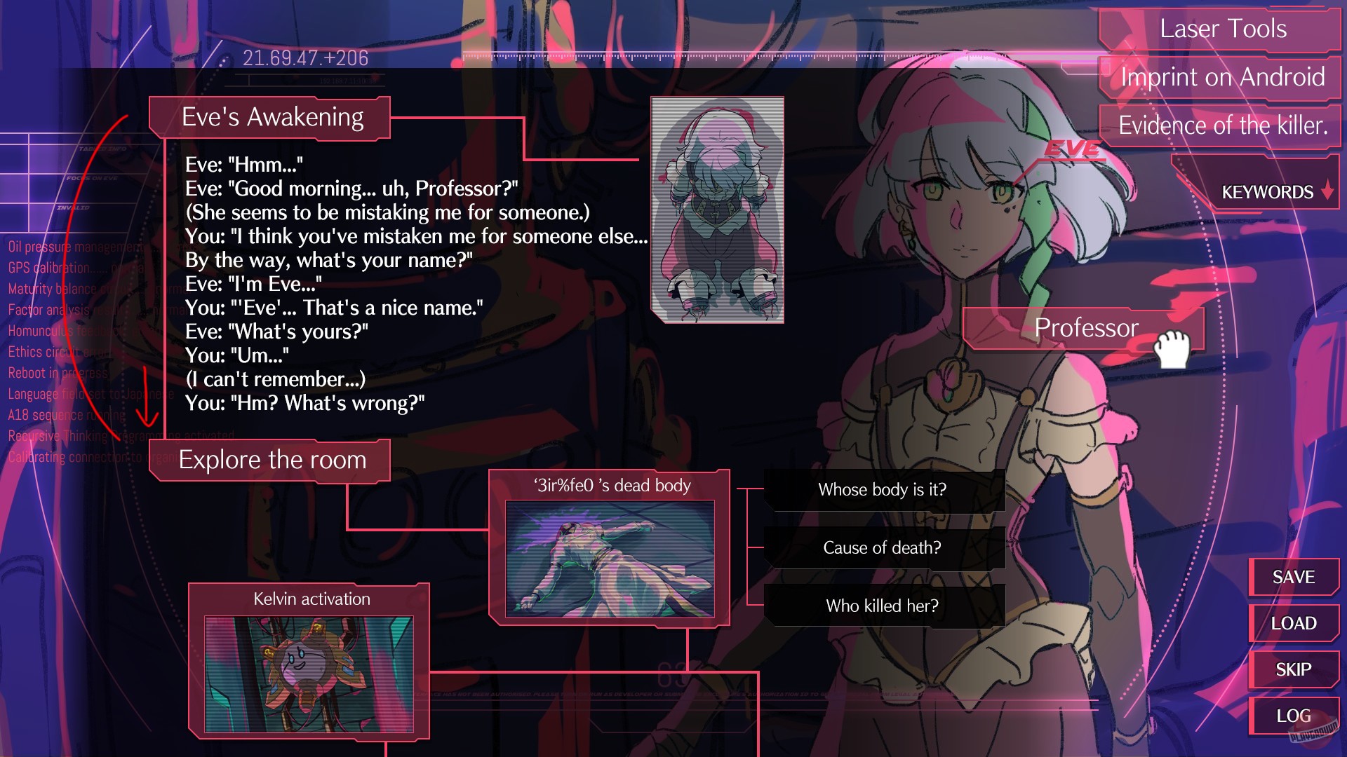 Перед вами стоит андроид по имени «Ева», а перед ней — безголовый труп, предположительно известный как «Профессор». Полностью лишённый памяти, вы вместе с Евой — андроидом и предполагаемым убийцей профессора — должны выяснить, что же на самом деле здесь произошло.