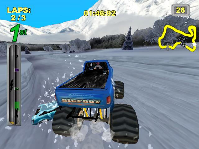 В вашем распоряжении целый автопарк из легендарных машин-бигфутов, разделенных на классы: от любительских болидов для новичков до серийных и мощнейших модифицированных монстров, готовых разнести все на своем пути. Собирайте бонусы и апгрейды прямо во время заезда, чтобы усилить свой транспорт и стать еще более непобедимым. Хотя в Bigfoot: Collision Course и есть возможность «пообщаться» с соперниками бамперами (а точнее, шинами размером с маленький автомобиль), главная цель — не устроить demolition derby, а первым пересечь финишную черту. Так что да, вы можете и будете крушить все вокруг, но помните: скорость — ваш лучший друг, а разрушенный забор — всего лишь декорация на пути к победе. Игра предлагает разнообразные локации, от зеленых лесов до суровых снежных пустошей, каждая из которых — это новый полигон для ваших безумных трюков и прыжков.